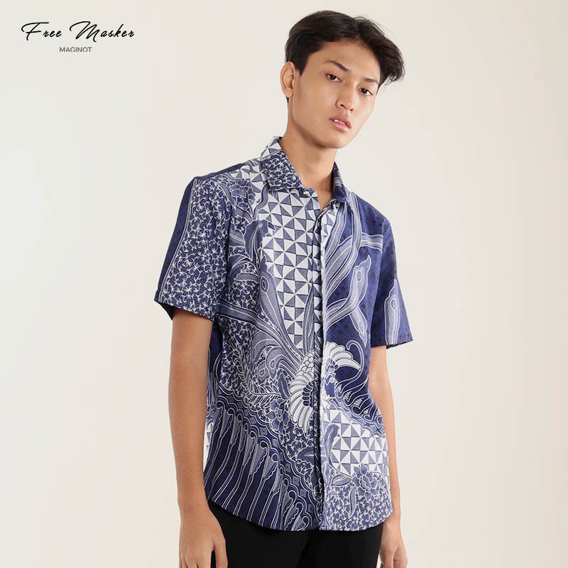 Name: Maginot Kemeja Batik 2.0 Wistara-ss Motif Timbul Lengan Pendek Pria + Free Masker