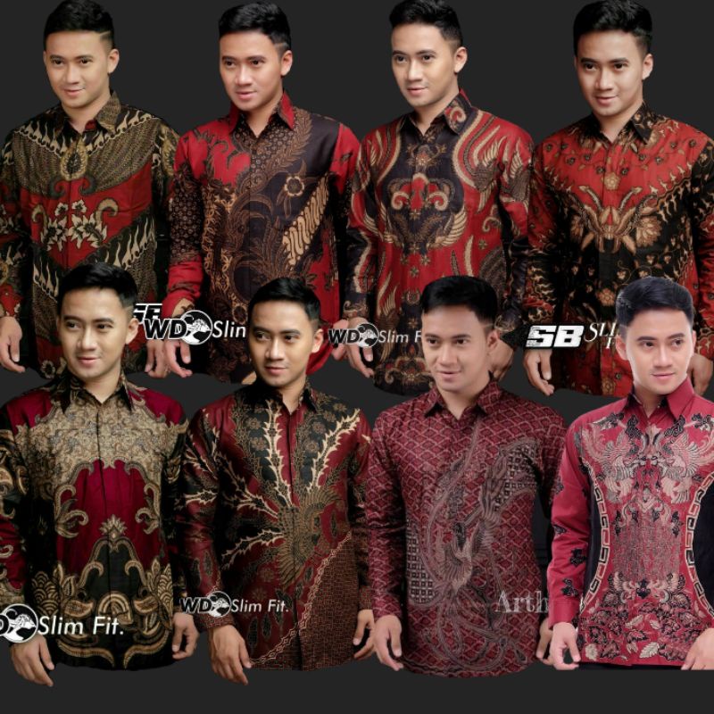 Banting Harga Pakaian di Kabupaten Sumbawa Baju Batik Pria Slimfit Merah Series Big Size M L Xl Xxl Atasan Kemeja Batik Lengan Panjang Original dari Batik Tejo Anom Store Kota Pekalongan