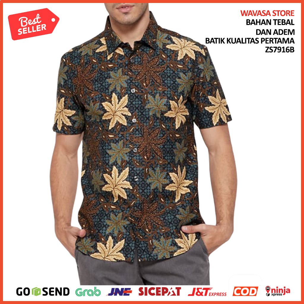 Name: Kemeja Batik Kantor Pria Slim Fit Hem Baju Cowok Kerja Batik Slimfit Unik Lengan Pendek Formal N5c6