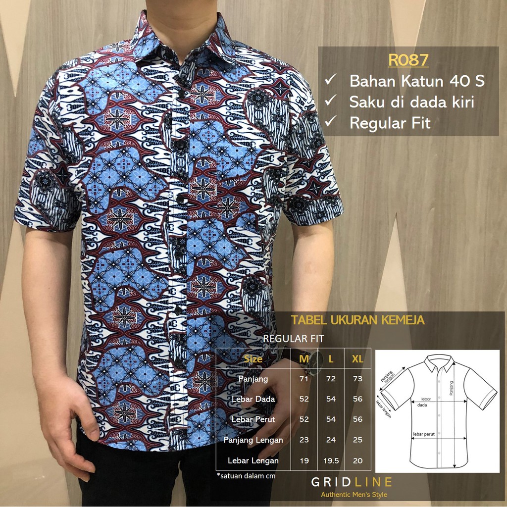 Name: [gridline - R087] Kemeja Batik Pria Katun Lengan Pendek Regular Pastel Biru Muda