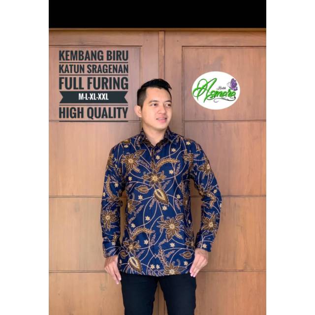 Best Seller Pakaian di Kabupaten Sumbawa Barat Kemeja Batik Pria Lengan Panjang Kembang Biru Katun Sragenan Full Furing Size M-xxl High Quality dari Tidak Ada Merek Kota Surakarta (solo)
